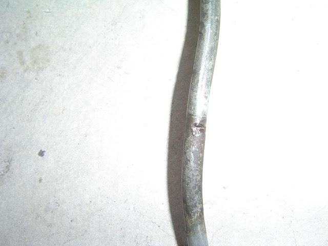 Ein weiteres Risiko für eine ungewollte Benzin-Leckage im Motorraum ist die Durchführung durch den Gebläsekasten. Werksseitige Gummitüllen sorgen dafür, dass die Metallleitung nicht an den beiden Kanten des Gebläsegehäuses reiben. Diese Gummitüllen bei jeder Inspektion einer Sichtprüfung zu unterziehen ist kaum nennenswerter Auwand, hat aber elementare Bedeutung wenn man sich die untenstehende Detailaufnahme ansieht. So etwas geht logischerweise nicht lange gut.
